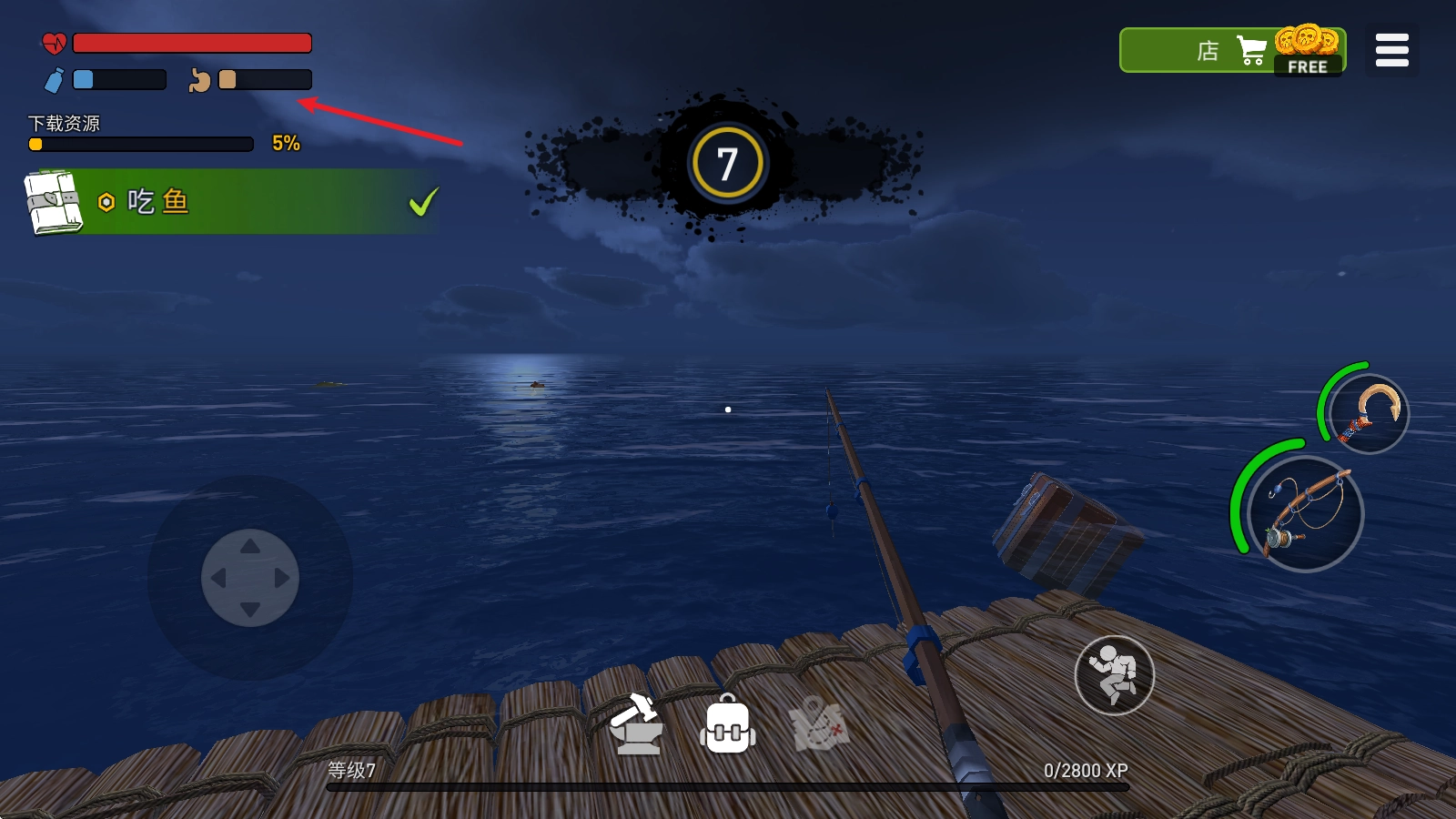 3、时刻留意海底潜藏的危险,木筏周边隐匿着不少随时可能将你吞噬的危险生物,务必保持警惕!