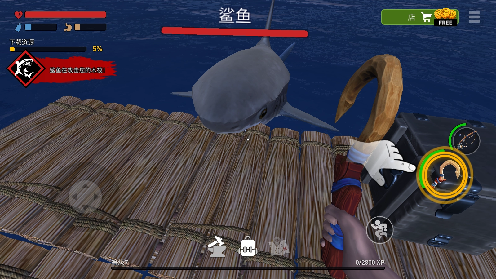 海洋游猎生存中文版是一款以木筏求生为主题的生存冒险游戏。游戏中,玩家将置身于茫茫大海中的一片木筏之上,由此开启一段惊险的求生之旅。玩家需要利用手中的工具,打捞周围海面上漂流的各类物资,从无到有地制作武器、工具和食物,以此维持基本的生存需求。当积累了足够的资源后,便可以逐步升级和改造自己的木筏,为自己建造一个安全的避难所,抵御海洋中危险生物的侵袭。通过不懈的努力,最终打造出一座坚固的海上堡垒,在危机四伏的海洋中勇敢地生存下去!