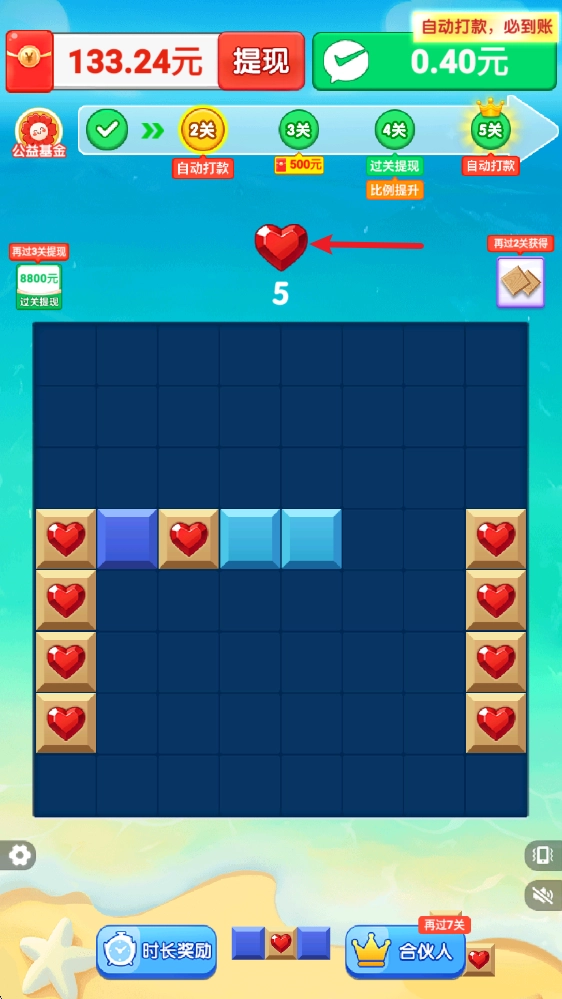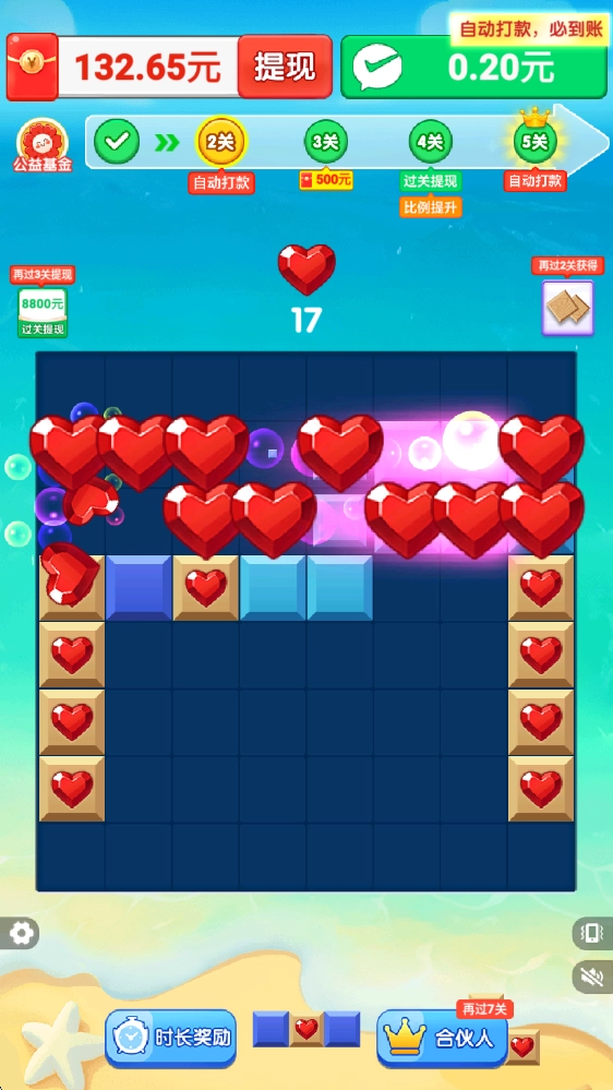 2、这里有海量关卡供你尽情挑战,每一关都准备了丰厚奖励等你领取,只要顺利消除方块通过关卡就能获得。