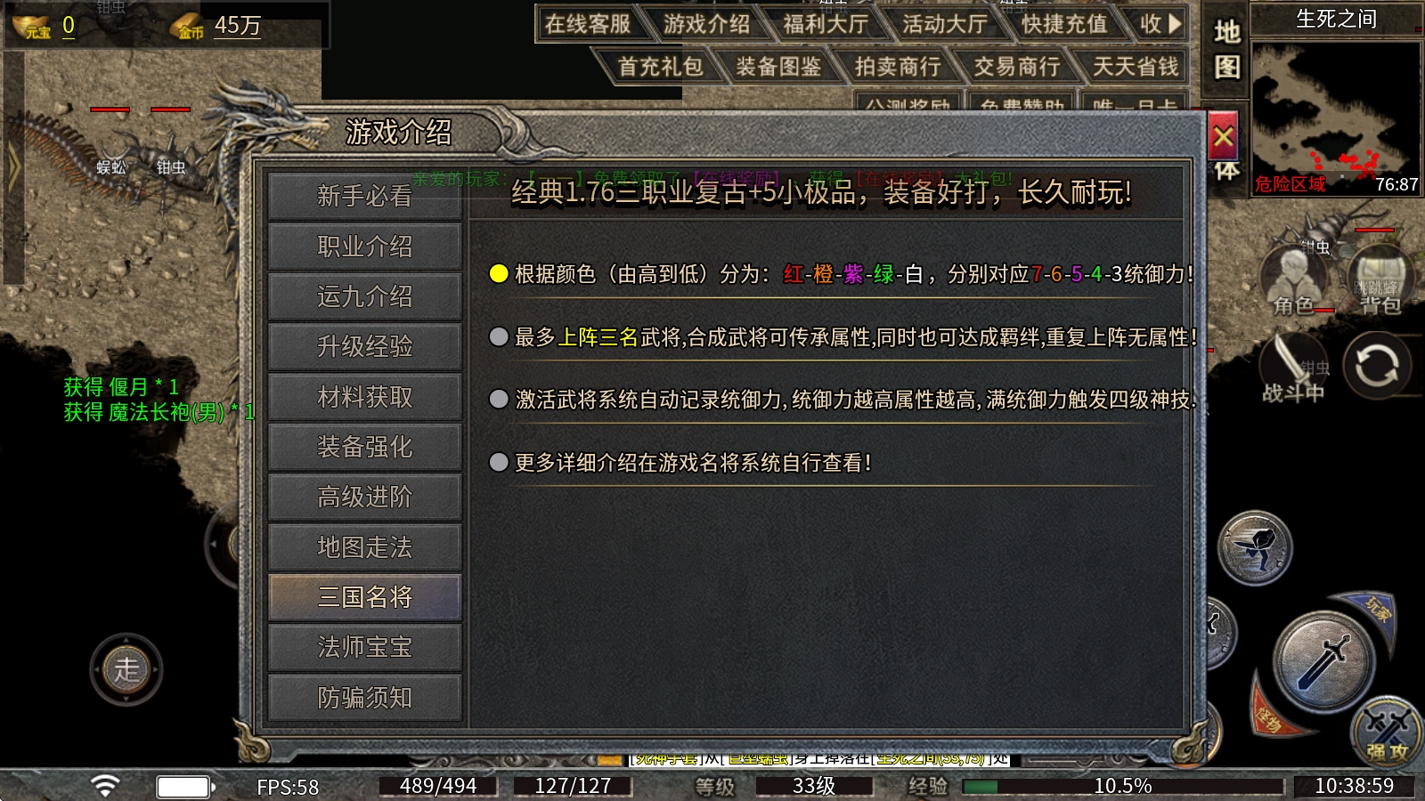 1、全新原创玩法三国名将系统,融合三国卡有神秘羁绊,各职业必不可缺的PK利器。