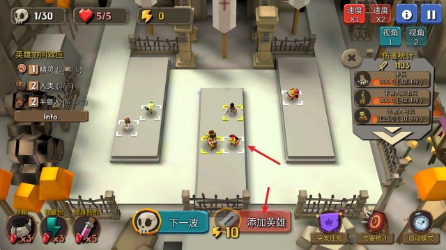2、相同的英雄可以合成升级为更高等级的英雄,通过消灭敌人获取召唤英雄的能力,这样循环往复就能打造出更强大的防御体系。