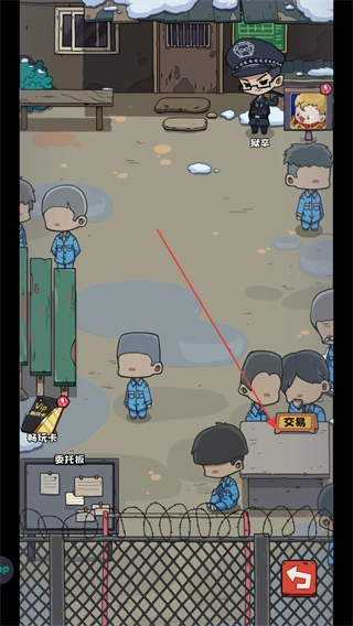 2、点击监狱内左下角的放风按钮进入天台放风区域,可以点击交易进行物资的交换。