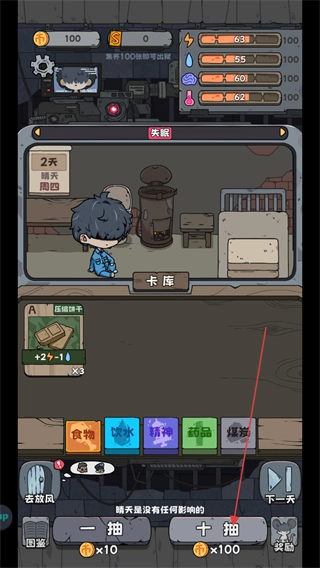 4、在监狱内除了通过交易获取物资外,还可以通过花费金币进行抽奖获得物资卡牌。