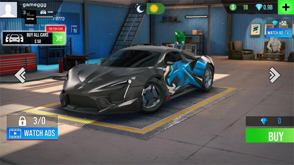 5、在主界面中,点击左右箭头可切换不同车辆,点击右下方的buy按钮即可购买这些车辆。