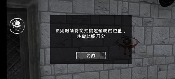 玩家点击墙上那只红色的独眼,就能收集到眼睛符文这件道具,使用它之后,就能确定怪物的大致位置了。