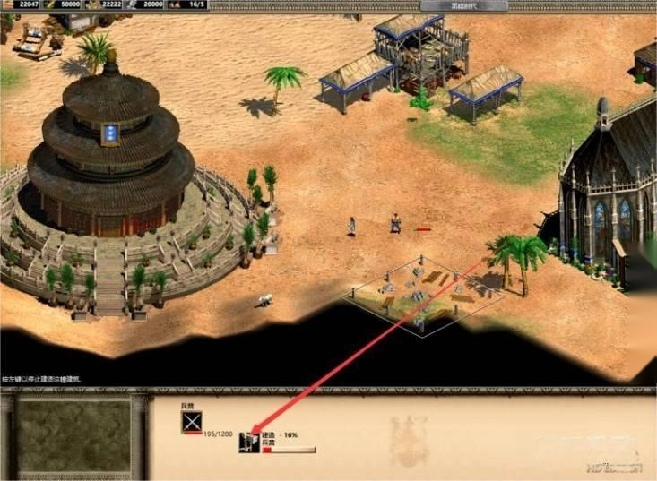2、如果想要拆除农民正在搭建的建筑,直接点击游戏界面下方的“锤子”就可以终止搭建了。