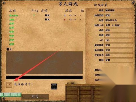 4、游戏【创建】完成,点选【我准备好了】的复选框
