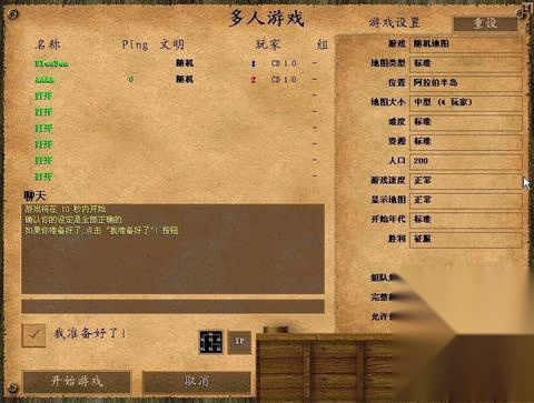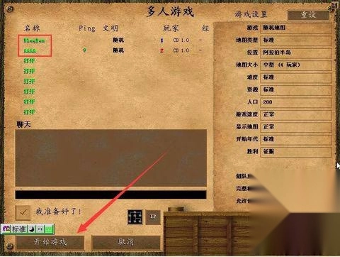 7、此时在创建游戏的那台电脑上就可以看到新加入的其他玩家了,此时可以点击【开始游戏】