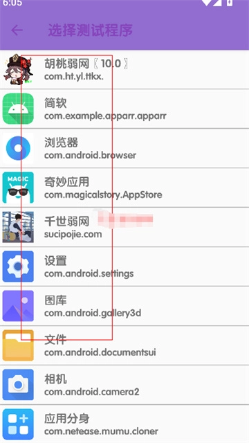 选择需要测试的应用