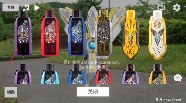 进入游戏后,初始状态为胜利神光棒形态,屏幕中央显示神光棒本体。此时点击左下角的钥匙图标,即可从“奥特曼密钥”或“怪兽密钥”中挑选想要切换的变身形态。