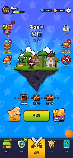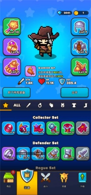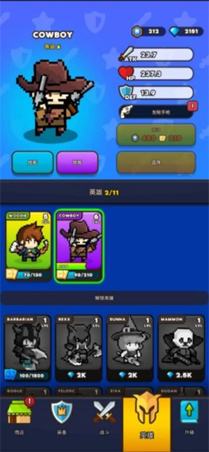 当通过第5章后会解锁英雄和装备,点击英雄可以更换你的角色。