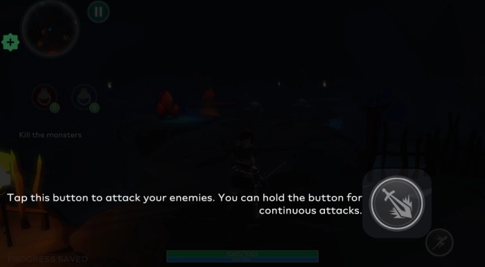 5.继续前行将触发首次剧情战斗,战斗操作简单,只需点击“攻击”按钮即可完成基础操作。