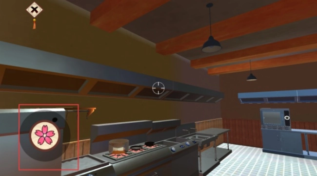 3、进入游戏场景后,点击左下角图标移动视角,按照游戏提示进行食材处理、烹饪等操作,开启料理模拟体验。