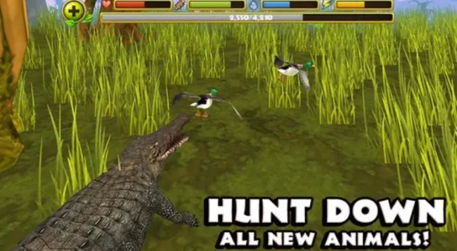 生存挑战:玩家需操控鳄鱼在沼泽、河流等环境中求生,维持健康、饥饿、口渴与精力等状态。通过捕食各类动物补充能量,同时需留意防范其他肉食动物的袭击。