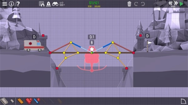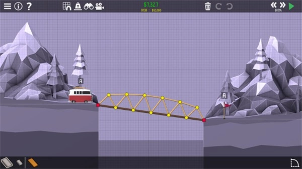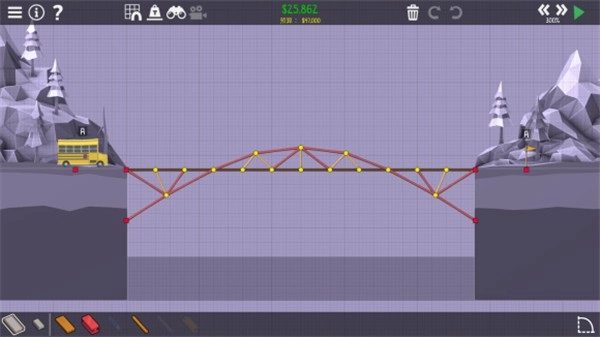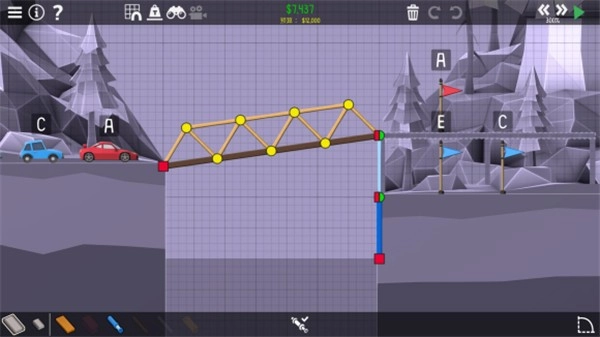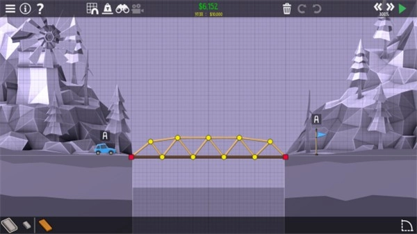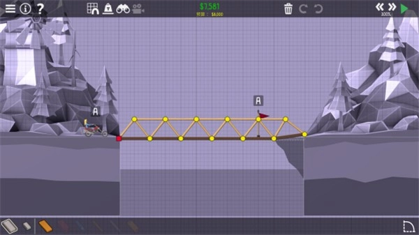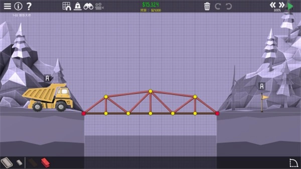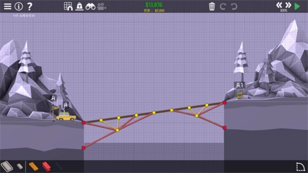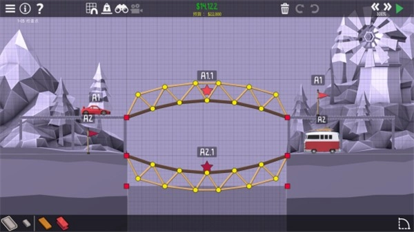 1、在每一种地形上面搭建出完美的桥梁,你可以借助的道具和工具都是有限的,全凭自己。