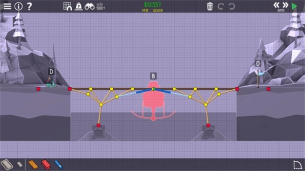 2、涵盖了大量的物理原理知识,对于新手朋友只能够依借自己的感觉来搭建各种风格的桥梁。