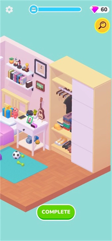 unpacking游戏采用治愈系卡通画风,玩法简单轻松,只需通过点击和拖动操作进行整理,在不同的小房间里按照自己的想法自由体验,解压又有趣,是一款内容丰富的收纳整理解压游戏。