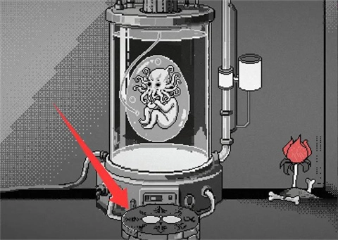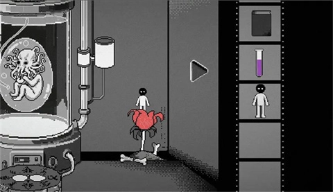 14、接着返回放置培养皿的房间,点击培养皿前方的祭坛。在左侧放置老鼠心脏,右侧放置人偶,以此唤醒克苏鲁幼崽。随后将毒药对准喂食口进行使用,之后培养皿的玻璃会破碎,游戏至此结束。