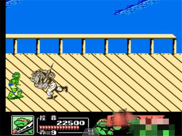 这个boss的动作相对笨拙,因此可以利用第二个忍者龟的技能持续攻击它,通常能做到无伤击败boss。