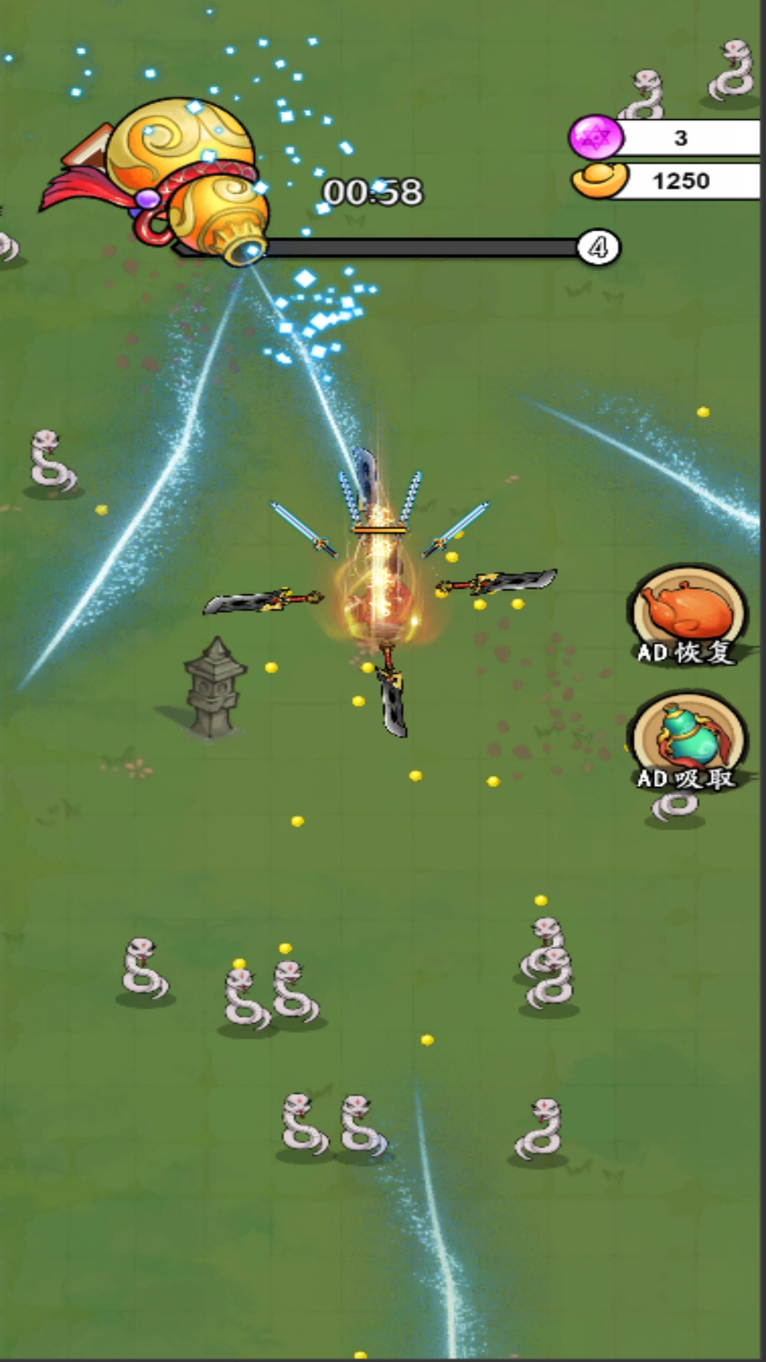1、玩家可滑动屏幕来操控角色移动,以此躲避敌人的攻击。当角色靠近敌人时,其身旁的刀具会自动旋转并击杀敌人。