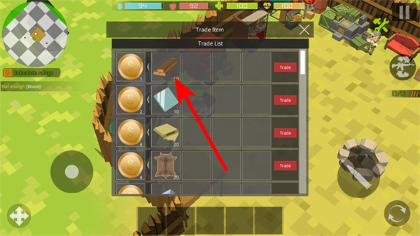 3、在交易界面选择交易物品,物品选择是资源交换的关键环节,选择后可通过交易获取稀缺资源,优化角色的物资储备。