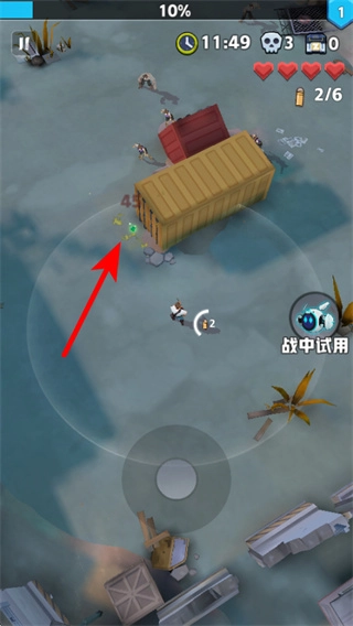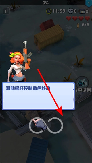 1、进入界面后,通过摇杆操控角色移动,移动操控是探索场景的关键操作,操控后可在场景中自由行动,开启收集战斗进程。