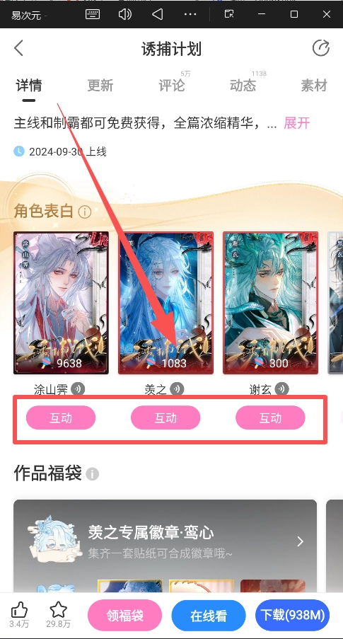 易次元平台将文字、音乐、画面与选项选择巧妙融合,构建起多分支的互动阅读模式。读者能够借助不同选项开启截然不同的情节走向,彻底摆脱了单一线性叙事的束缚。同时,平台还结合了动态视觉效果与丰富多样的互动玩法,让读者获得沉浸式的“走进故事”体验。