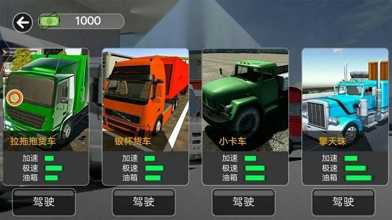 2、提供多款卡车供选择,每一款都具备独特的操控手感和性能特点,充分满足驾驶的渴望;