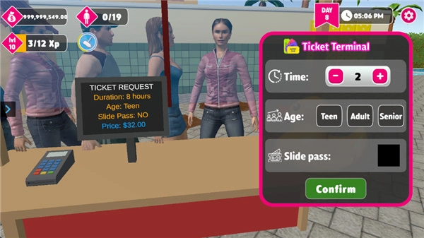 3、招聘员工并做好清洁维护!想要打造高效运营的水上乐园,就得组建一支靠谱的团队,让他们负责从泳池游乐项目到园区设施更新的各类工作。及时清理垃圾,维持环境干净整洁,提高游客的满意度,让你的水上乐园帝国不断发展壮大。