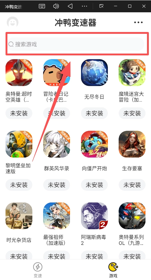 1、打开App,在 “游戏” 页面浏览,或直接使用顶部的 “搜索游戏” 功能。