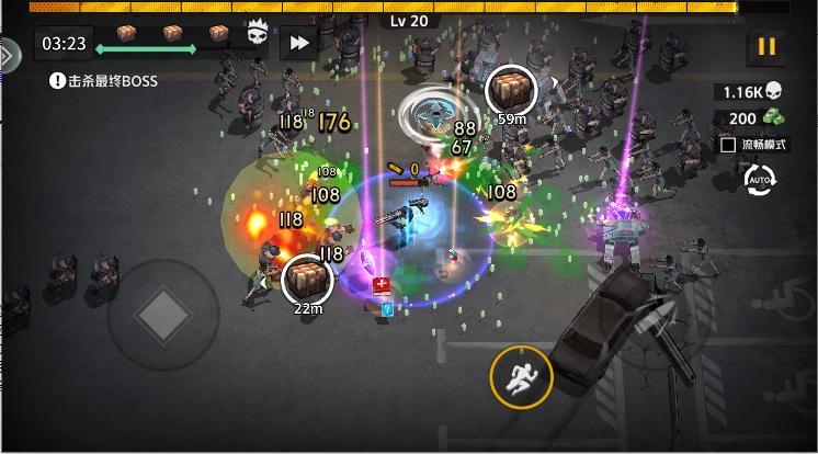 前期末日蜈蚣离你比较远的时候,像辐射、燃烧瓶这类范围有限的技能效果不太明显,所以建议优先选攻击距离远的武器和技能,而且先把一个技能升成超武来确保前期伤害,之后再升级其他技能。