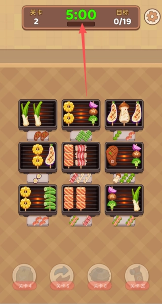 4、我们需要注意的是,后面更具难度的关卡中,消除了后面也有隐藏的烤串。可以选择道具去完成。