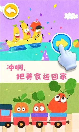 把打盹儿的西瓜唤醒,乘着香蕉船去海上探险……这些有趣的互动,能让宝宝喜欢上各种蔬果,慢慢养成不挑食的健康好习惯。