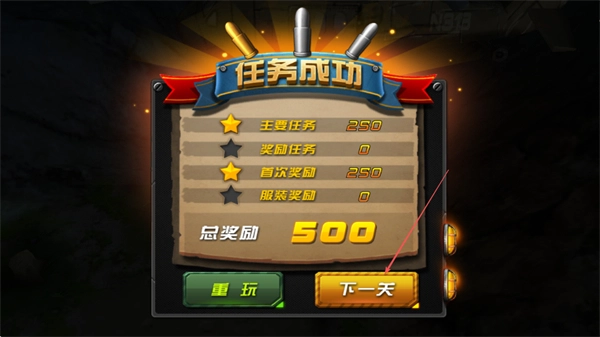 4、任务成功后,领取总奖励如500,点击下一天进入后续关卡,继续挑战。