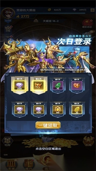在圣域的占星台首次十连抽必定获得一个黄金圣斗士,让你体验抽卡不肝不氪,放置轻松的游戏体验!