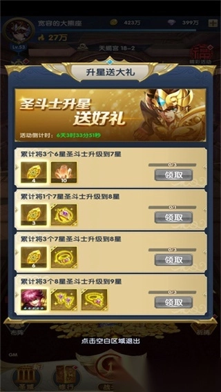 各位斗士提升圣斗士星级即可获得豪礼哦!让我们一起燃烧吧小宇宙!