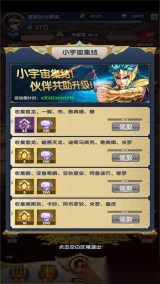 斗士们还记得圣域五小强吗?还记得十二黄金圣斗士吗?快快来收集指定斗士,即可获得丰厚奖励哦!