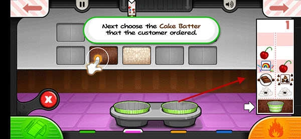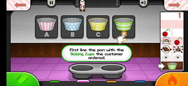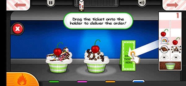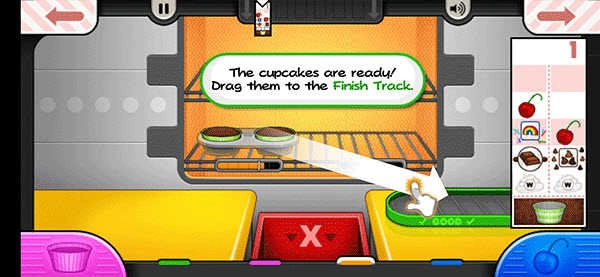 2、根据屏幕上出现的顾客订单,按步骤制作符合要求的纸杯蛋糕。