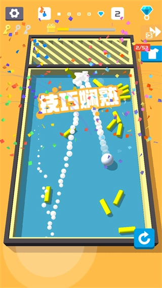 3、持续弹射,撞击更多柱子,包括黄色柱子,扩大消除范围。