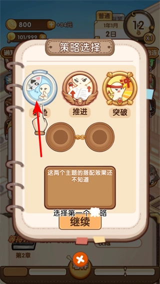 4、进入策略选择界面后,可点击铺垫等策略选项,挑选适配小说创作的策略;不同策略的组合搭配会带来各异的效果,有助于提升创作质量。