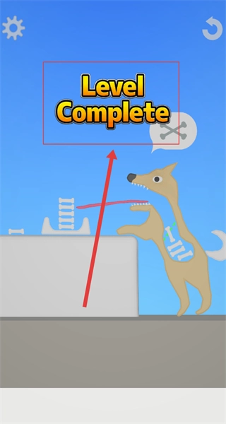 4、当狗狗的身体轮廓被骨头完全填充后,关卡任务即宣告完成,此时屏幕会出现“Level Complete”的提示字样。