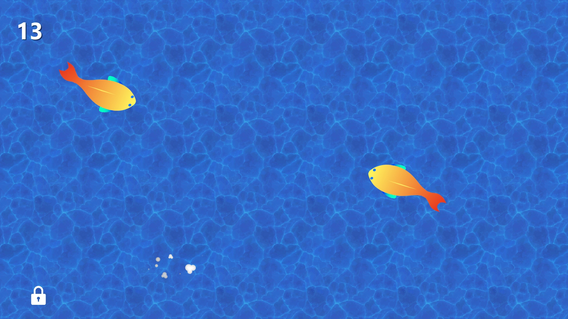 4、点击到小金鱼就会消失然后重新出现新的,左上角会有点击数。