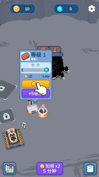 2、右下角有一个升级按钮,点击后可以提升设施,不过一些升级需要消耗金币哦。