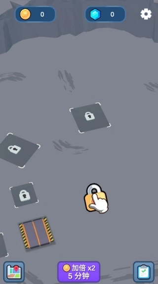 1、游戏开始时,点击屏幕上的铁锁图标,解锁最基础的建筑,开启你的月球冒险之旅。