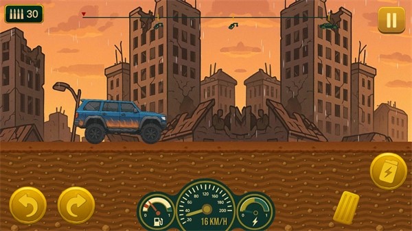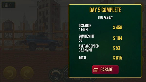 5、操控你的车辆持续前进,直至油量耗尽,此时游戏便会结束;结束后系统会依据你行驶的距离,发放相应数量的金币。