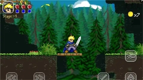 进入游戏后,首先要给角色起一个好听的名字,然后就可以开始游戏了。游戏里包含大量不同的关卡,操作方式十分简单:左侧的按键用于控制角色左右移动,右侧的按键则是跳跃键和攻击键。遇到敌人时要发起攻击,但得留意左上角显示的生命值,一旦生命值耗尽,就需要重新开始游戏。