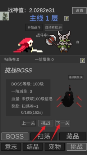 3、还能够点击战神进度条游戏下方的挑战来对抗大boss