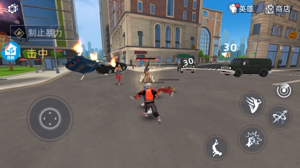 3、城市中会动态出现抢劫、火灾甚至怪物袭击这类随机事件,需要玩家及时做出应对。1、借助虚拟轮盘实现灵活走位,同时熟练操控右侧按钮来完成飞行操作与技能释放,这是高效穿梭城市、快速到达任务现场的基础保障。