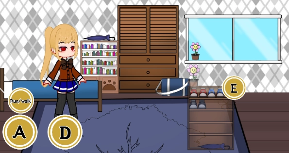 1、进入游戏后,玩家可借助左下角的AD按键操控角色左右移动,E键为互动功能键。