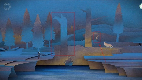 2、双击屏幕后向右移动,会发现下方有河流阻挡无法通过。此时沿着屏幕最底部滑动,就能拉出风铃,狼会随之趴下(后续遇到狼的场景,需先找到相同的风铃)。之后会出现一座桥,从桥上通过即可进入下一个场景。